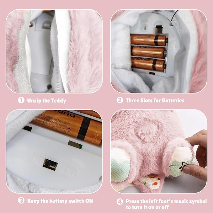 Whether it’s nap time or bedtime, Breathing Teddy Bear gentle pulsing belly light and soothing melodies make sleep irresistible- even for the most restless little ones.